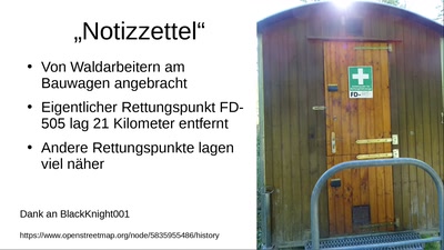 So hat sich im Laufe der Jahre ein unabhängiges QS-System entwickelt, durch das in OSM einige Erfassungsfehler korrigiert werden konnten. Aber auch in den Daten der Forstverwaltungen konnten falsch aufgestellte oder verwechselte Schilder entdeckt werden.